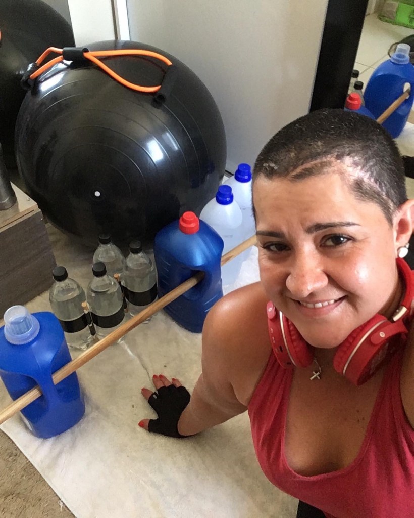 Eu tiro forças, de onde não imagino. Eu tive um Avch e nunca vou desistir de ir mais longe. Mostrar pro meu corpo que ele pode sim!