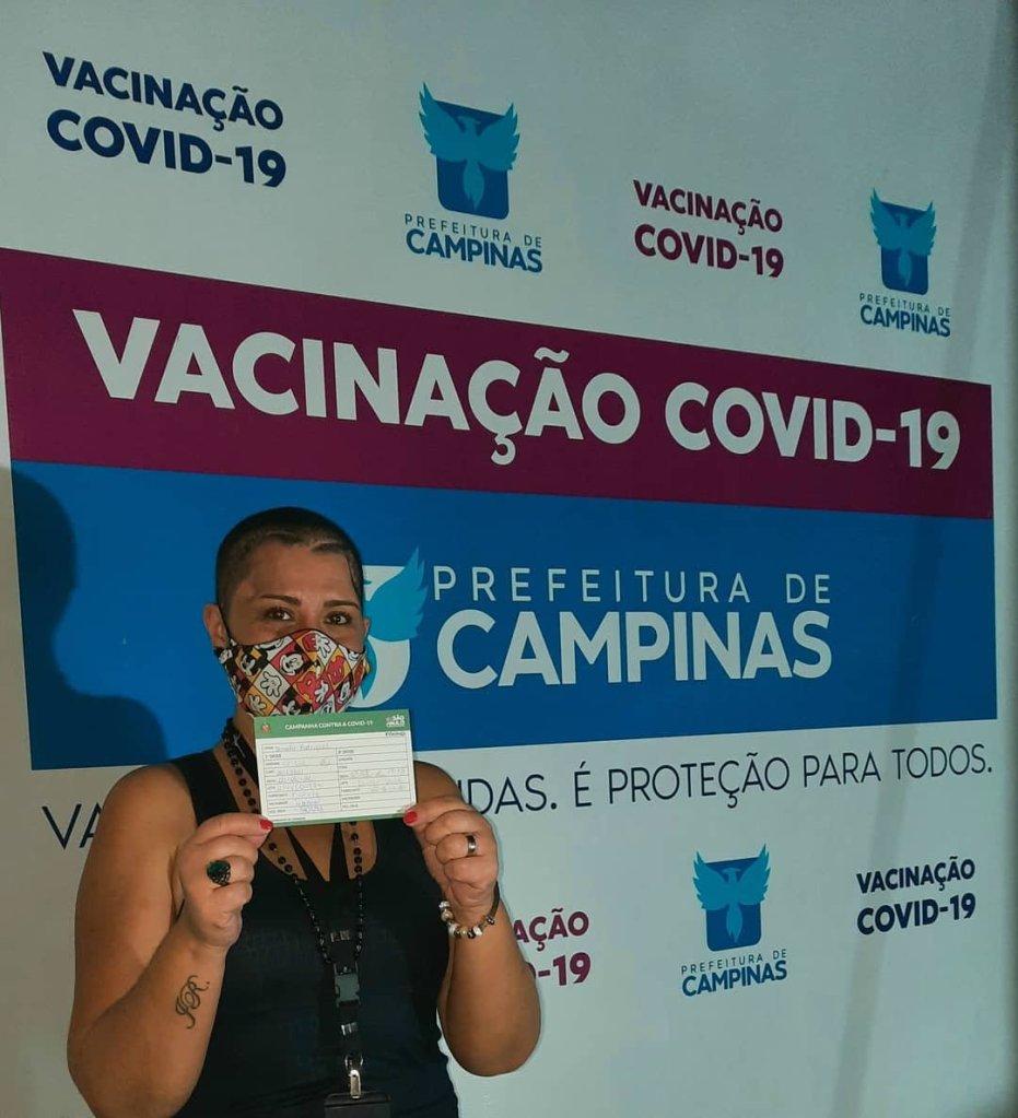 Alegria e esperança é o sentimento que está em mim neste momento! Hoje foi o dia de mais uma vitória em minha vida, tomando a primeira dose da vacina! O cuidado continua!