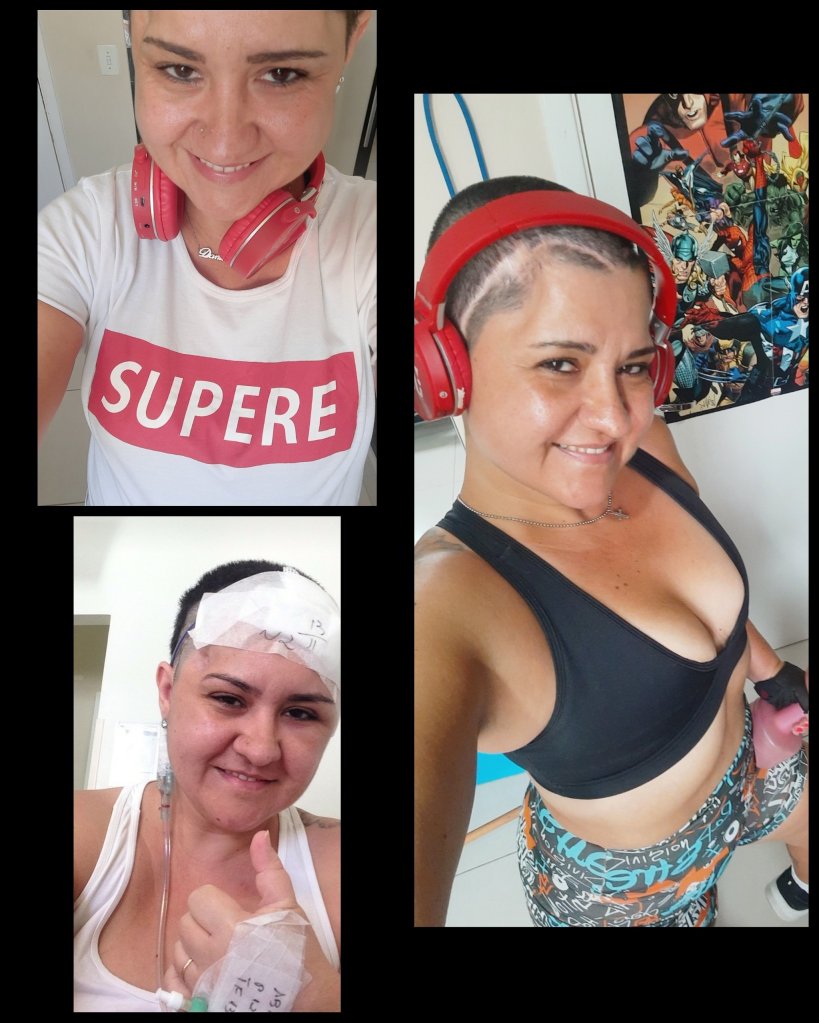 Eu chorava escondida no banheiro… e então descobri que aquela imagem magra, com uma cicatriz que era enorme e uma mangueirinha no nariz era a minha… foi sofrido! Eu não queria me olhar no espelho, tinha medo do que via! Eram muitas dúvidas e medos!!